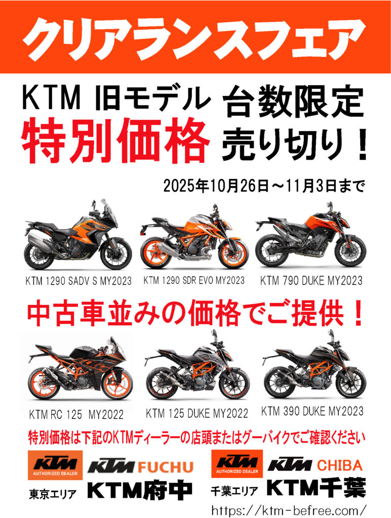 KTM千葉・KTM府中でクリアランスフェア(ご商談会)を開催します